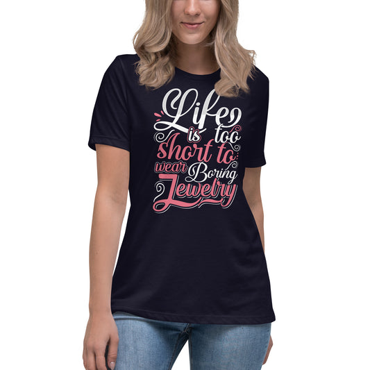 "Life Is Too Short To Wear Boring Jewelry" Quote Relaxed T-Shirt